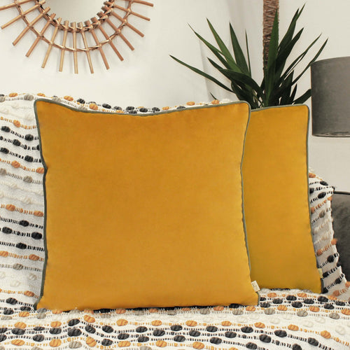 Opulence Soft Velvet Cushion Saffron/Graphite