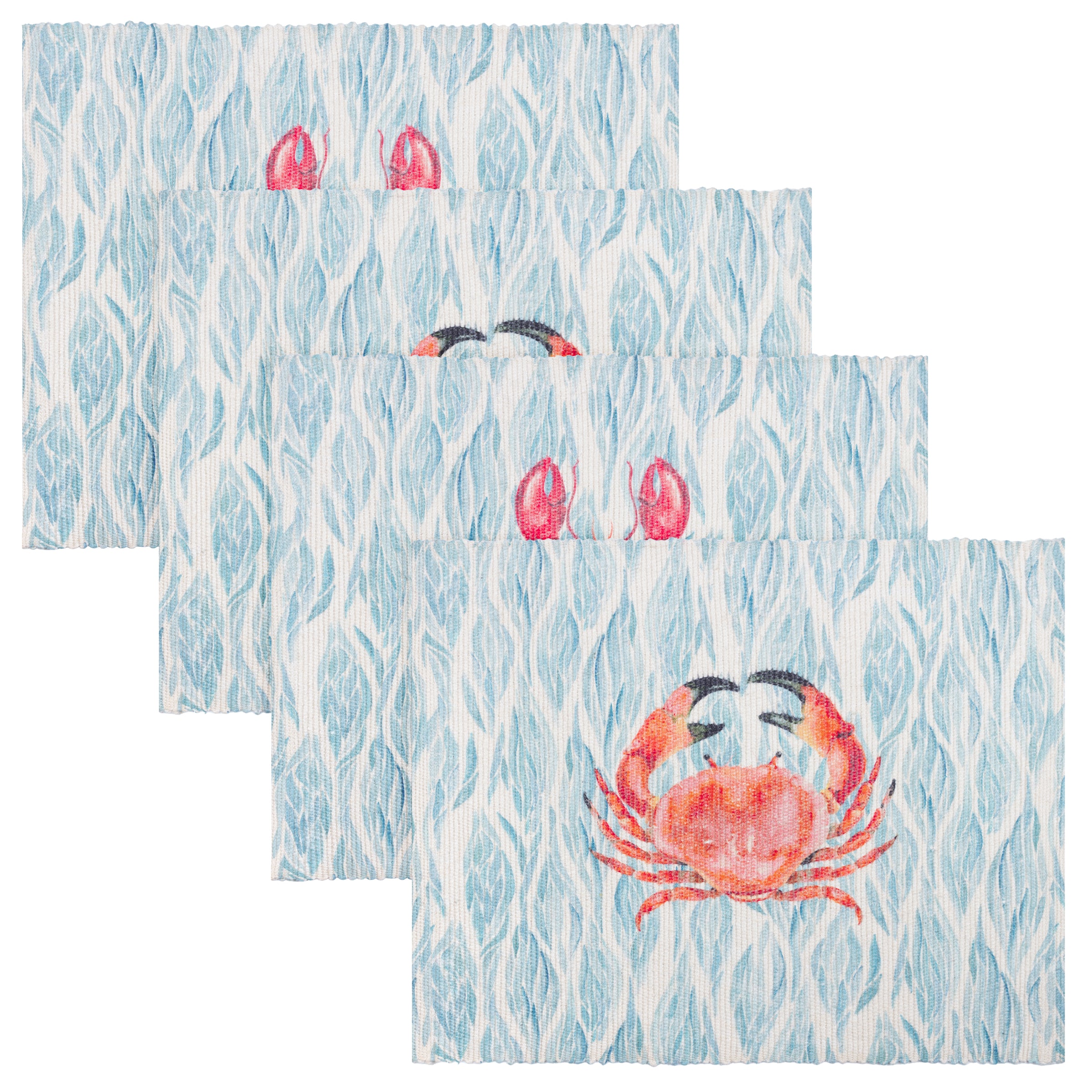 Bring a touch of the British seaside to any dining experience with the Abersoch placemats. Inspired by the coastline, these soft yet durable woven placemats feature hand-painted crabs and lobsters against a painterly sea background. Ideal for alfresco dining or inviting a nautical twist indoors, their quick-drying nature makes them as practical as they are stylish. The abstract, coastal design offers a modern way to style a table, whether inside or out in the garden.