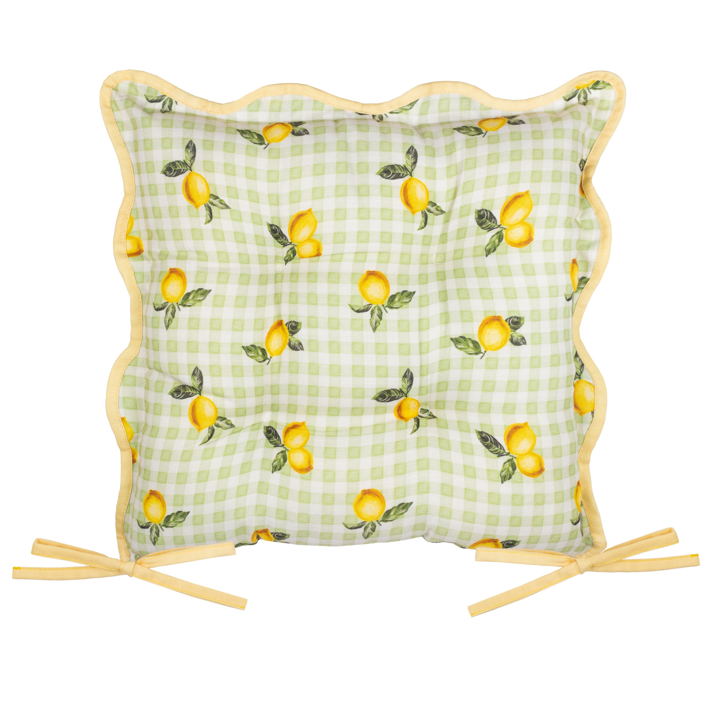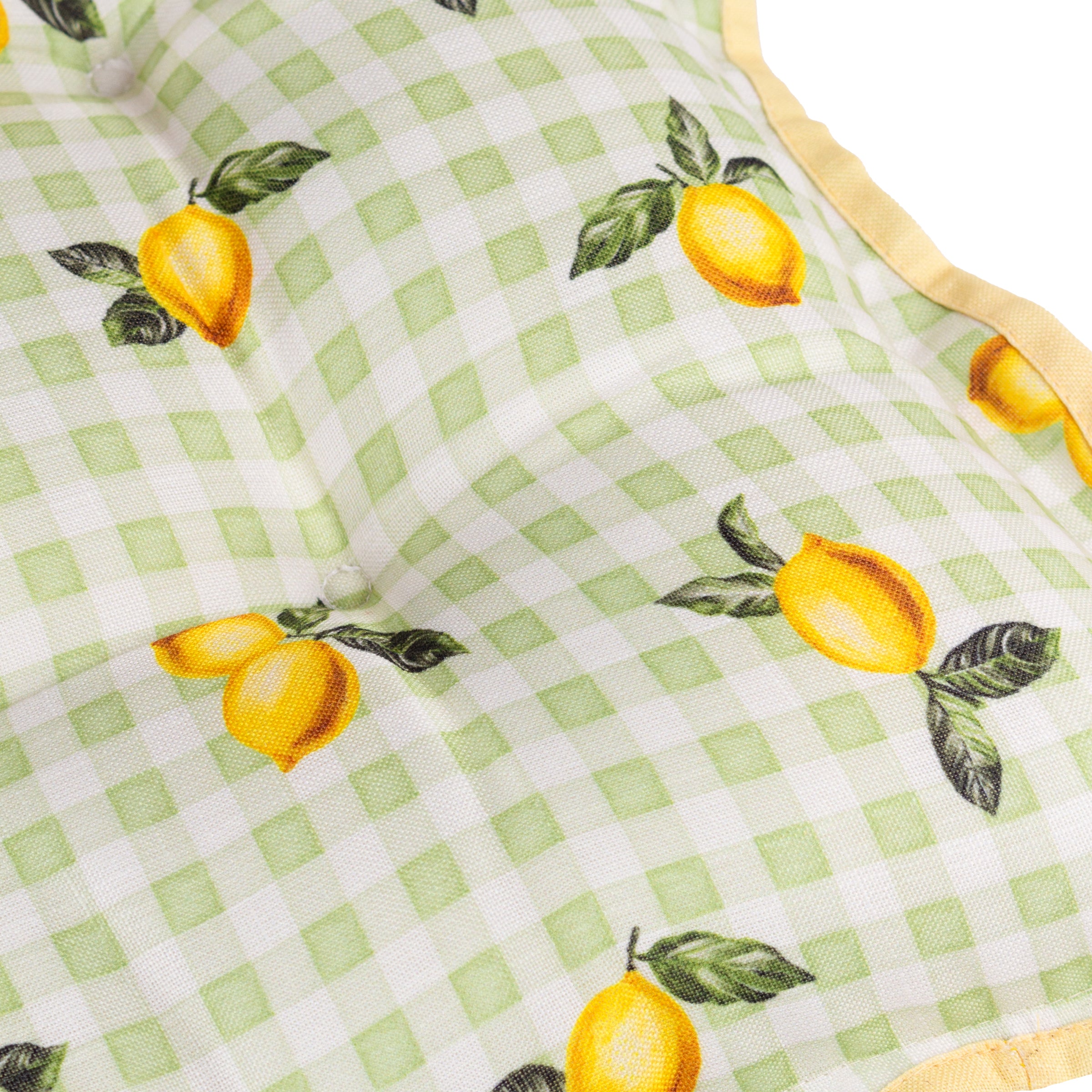The Fruits Lemons Seat Pads can brighten any space. They feature hand-painted lemons on a delicate gingham background. A playful wiggle trim and contrast piping add character to chairs. The soft, water-repellent fabric and tie fastenings make them suitable for both patio dining and kitchen breakfast areas.