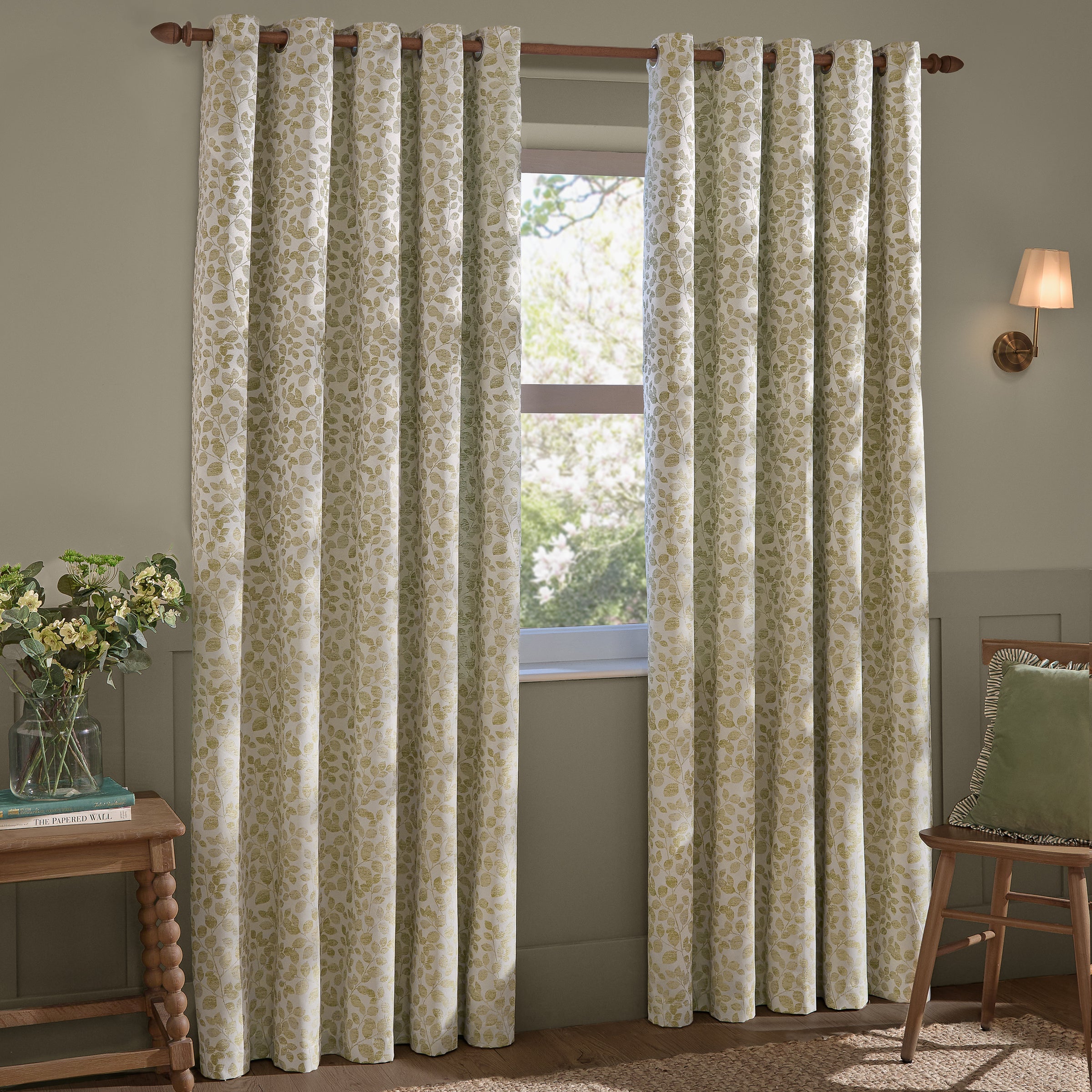 Grace Leaf Jacquard Fully Lined Eyelet Curtains Sage