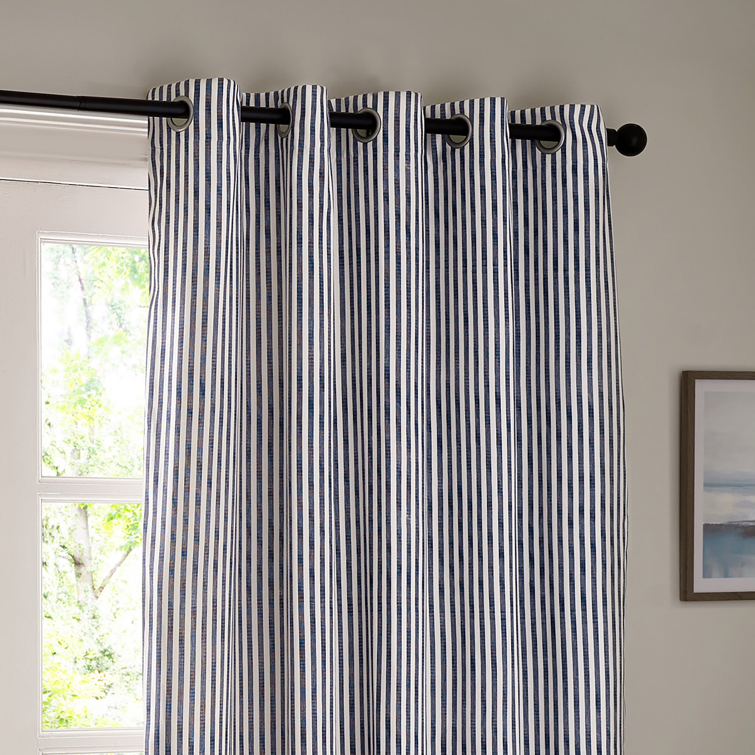 Login Apply for a trade accountHebden Striped 100% Cotton Lined Eyelet Curtains Navy