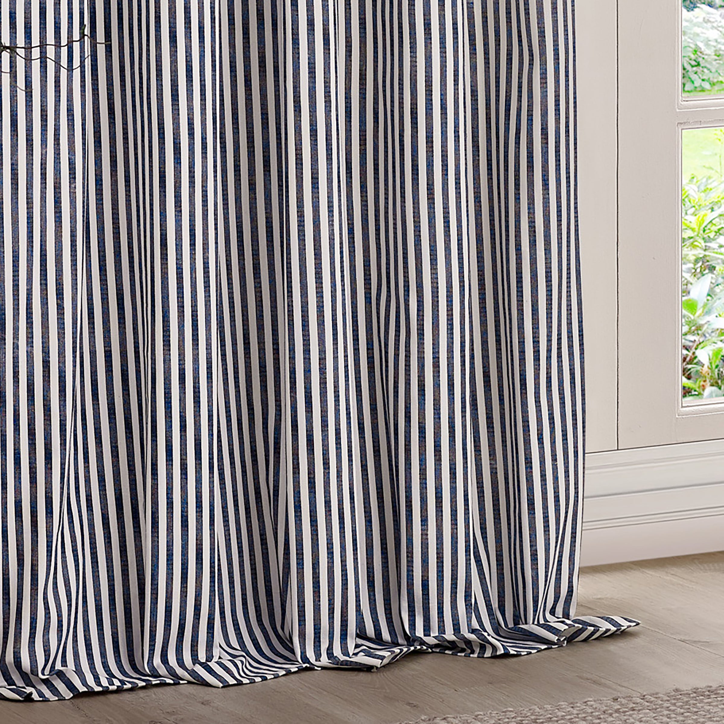 Login Apply for a trade accountHebden Striped 100% Cotton Lined Pencil Pleat Curtains Navy