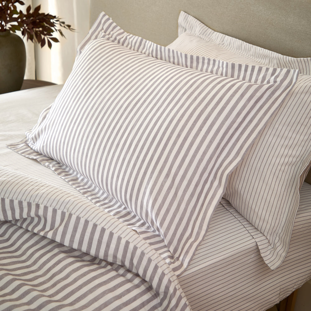 Hebden Mélange Stripe 100% Cotton Pillowcase Pair Mauve