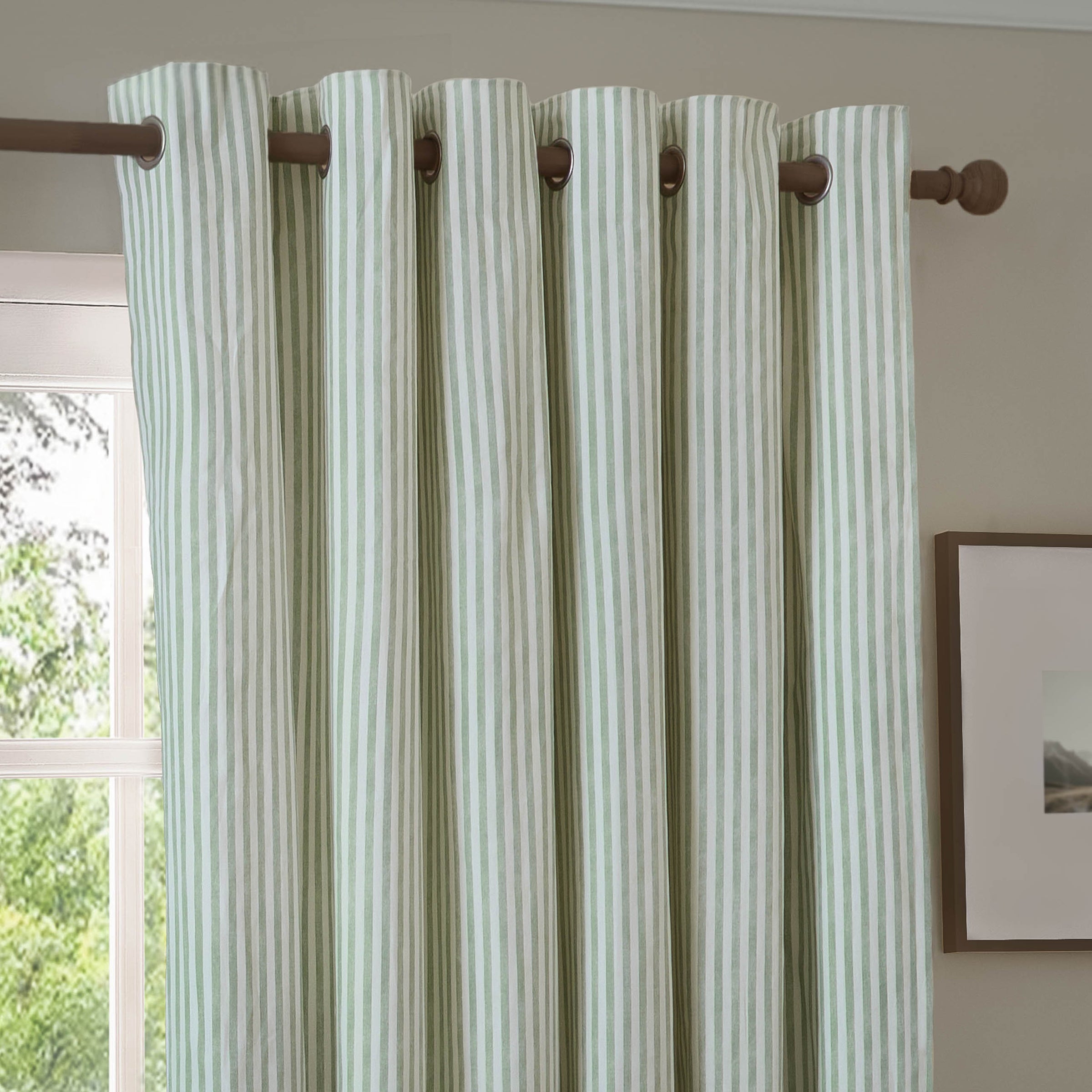 Hebden Striped 100% Cotton Lined Eyelet Curtains Eucalyptus
