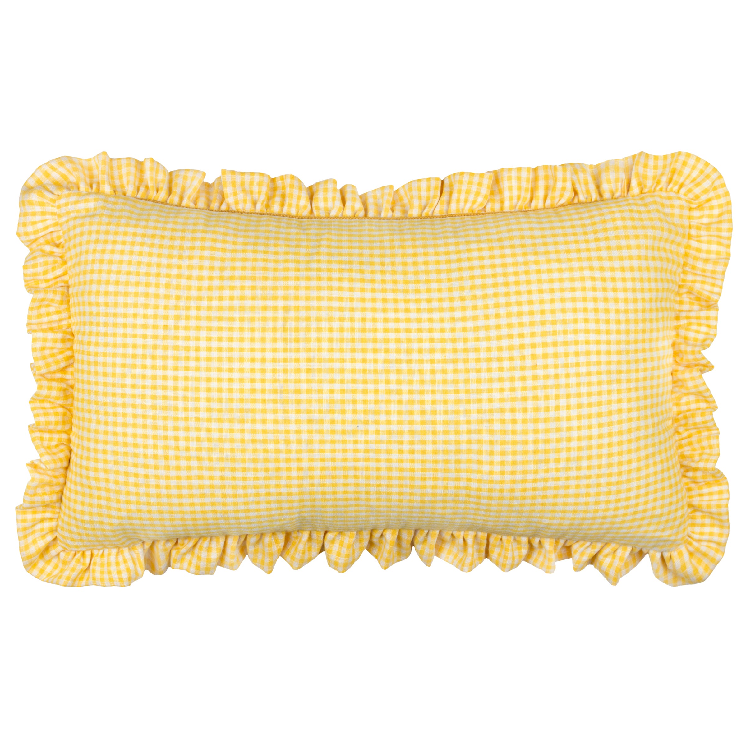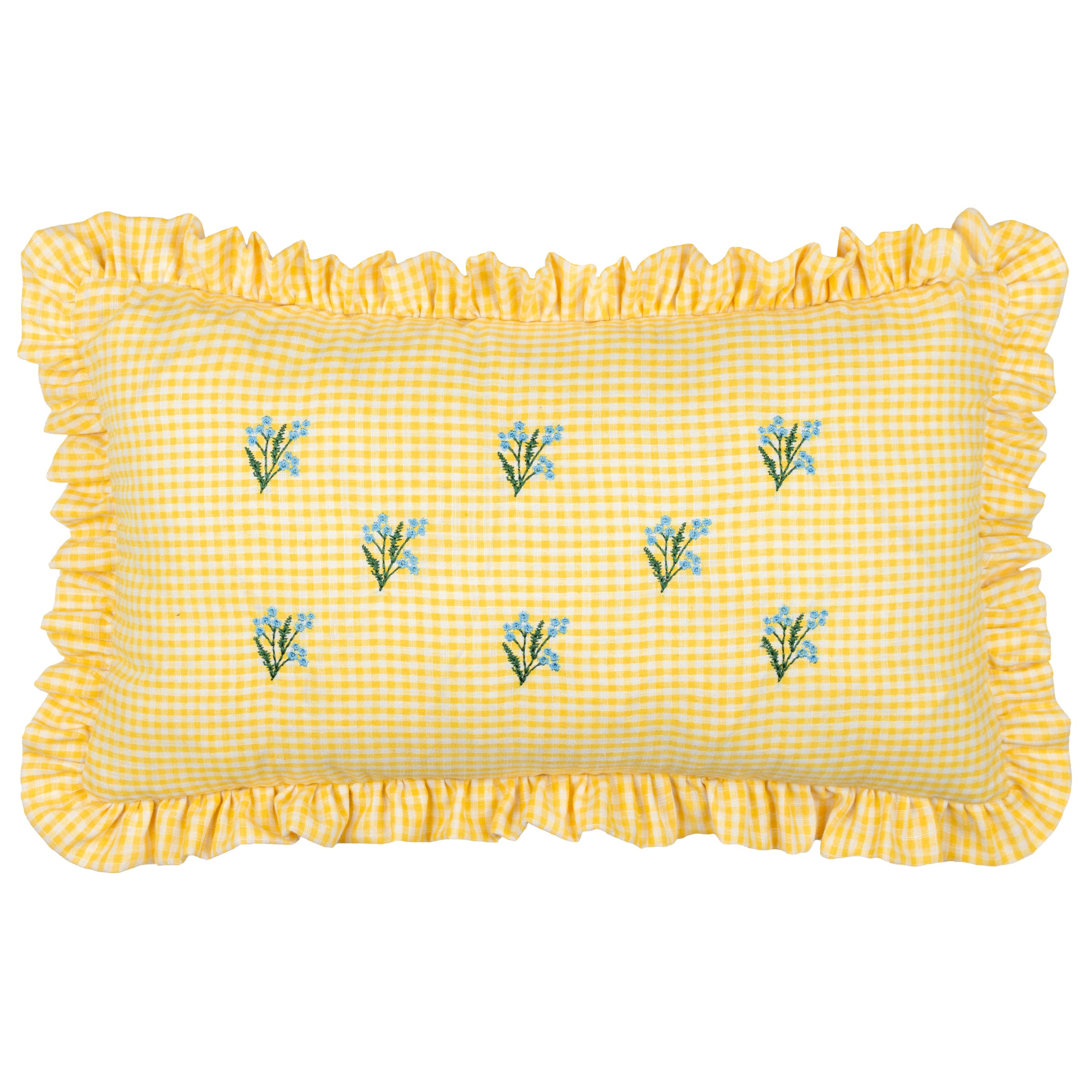Les Petite Fleurs Gingham Ruffle Cushion Yellow