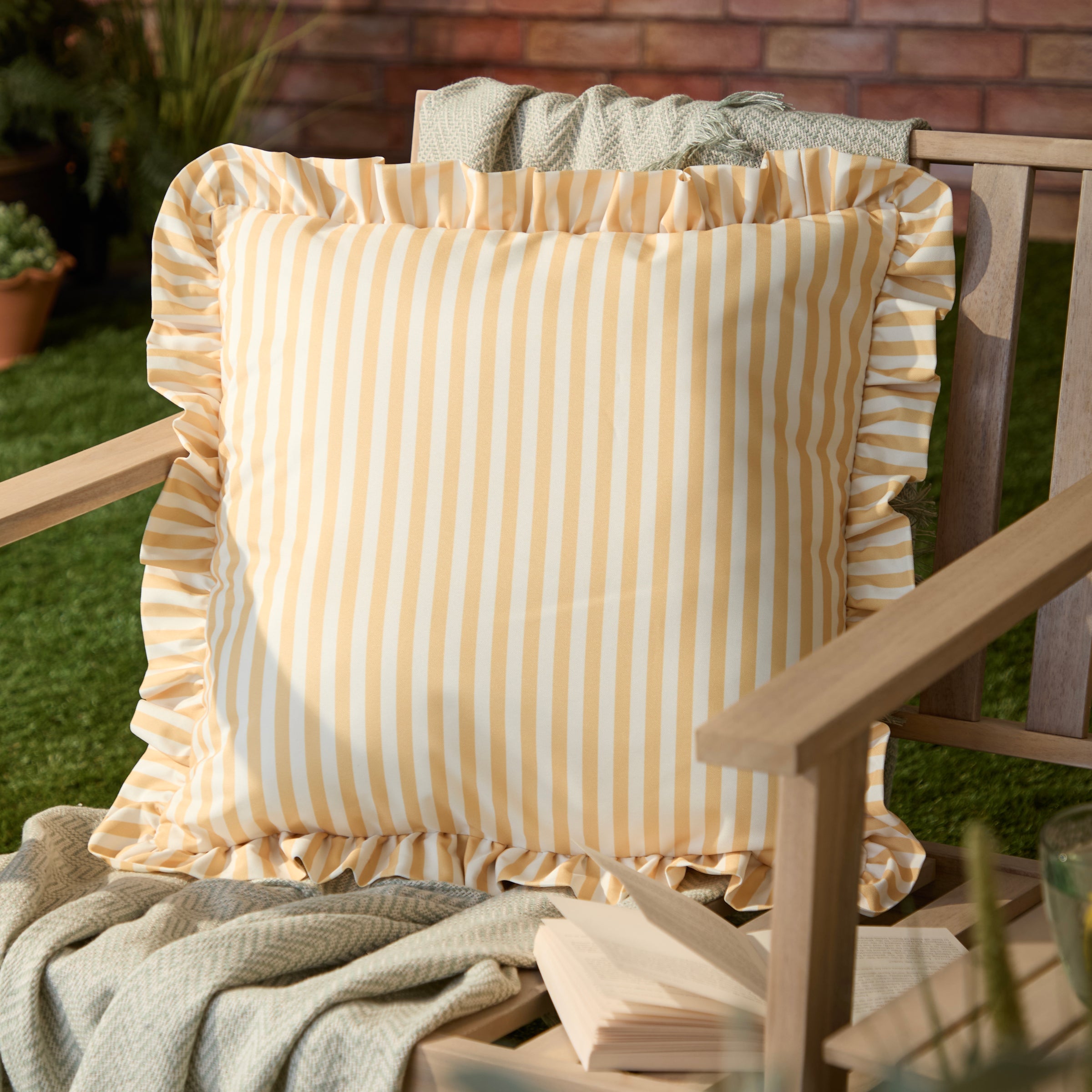 Millie Ruffle Striped Outdoor Cushion Yellow