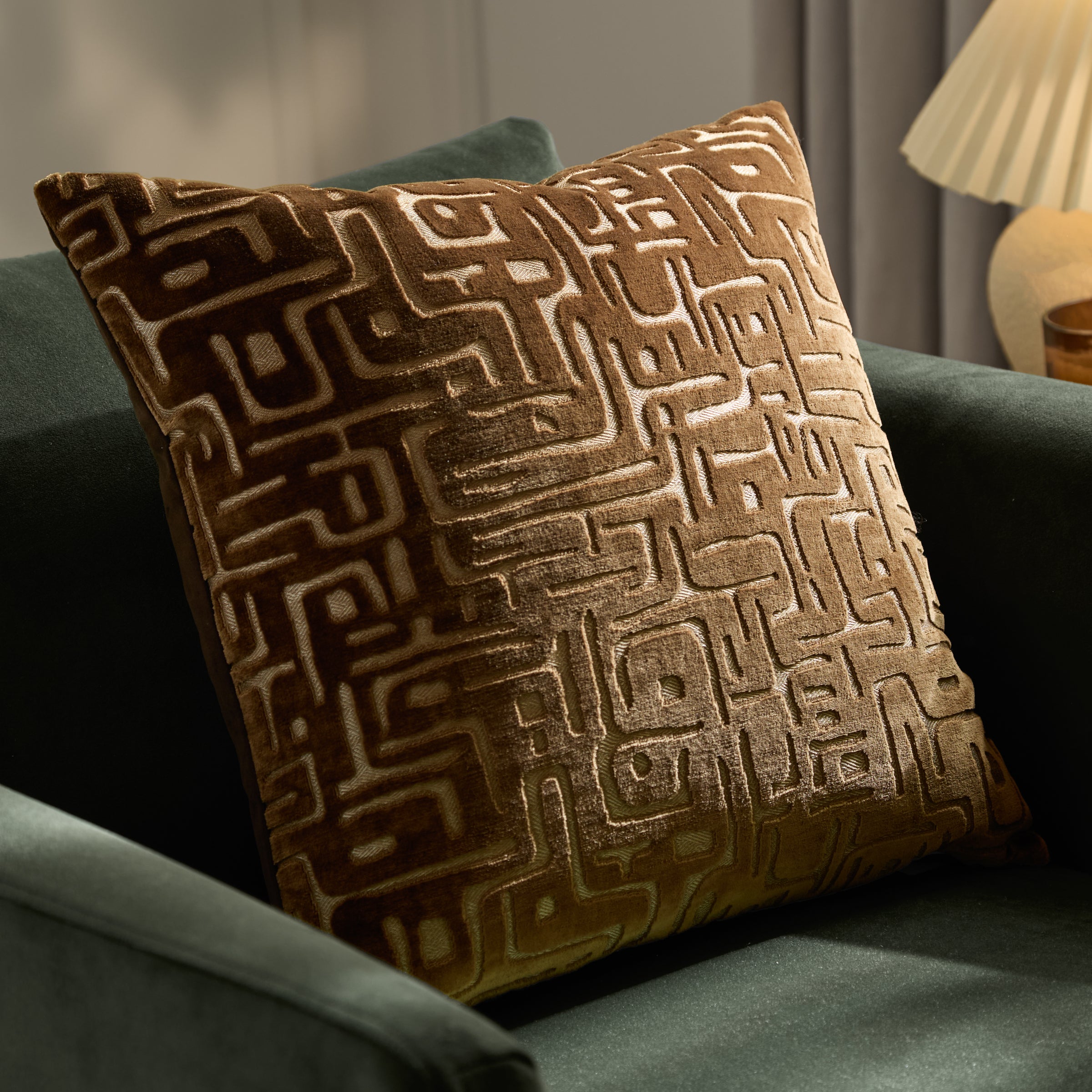 The Soren Cushion transforms any space with its opulent cut velvet texture and striking abstract geometric pattern. Crafted from luxurious velvet with a complementary plain reverse, this square cushion delivers retro sophistication in rich, sumptuous hues. The tactile cut design creates visual depth and interest, making it an elegant focal point for modern and traditional interiors alike.