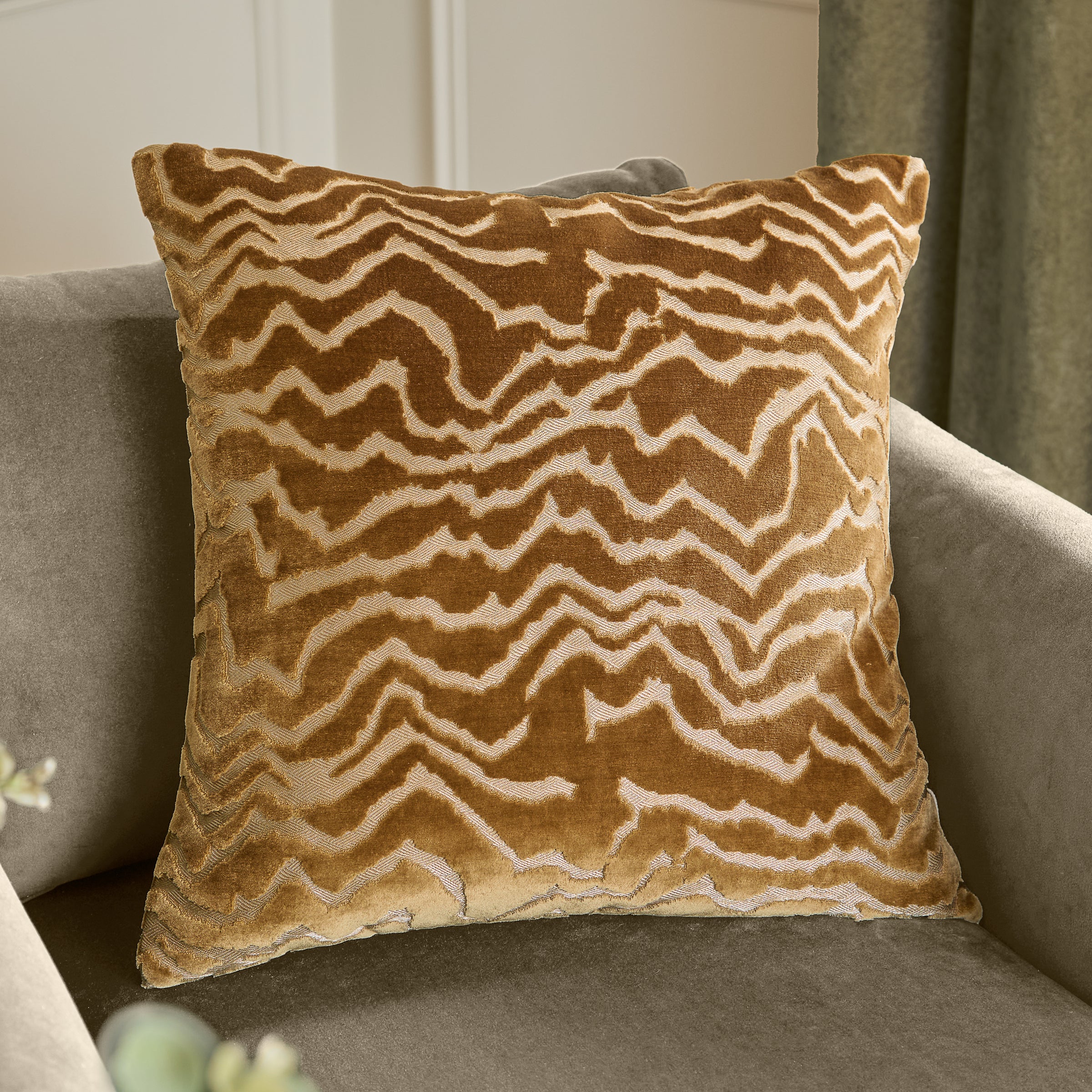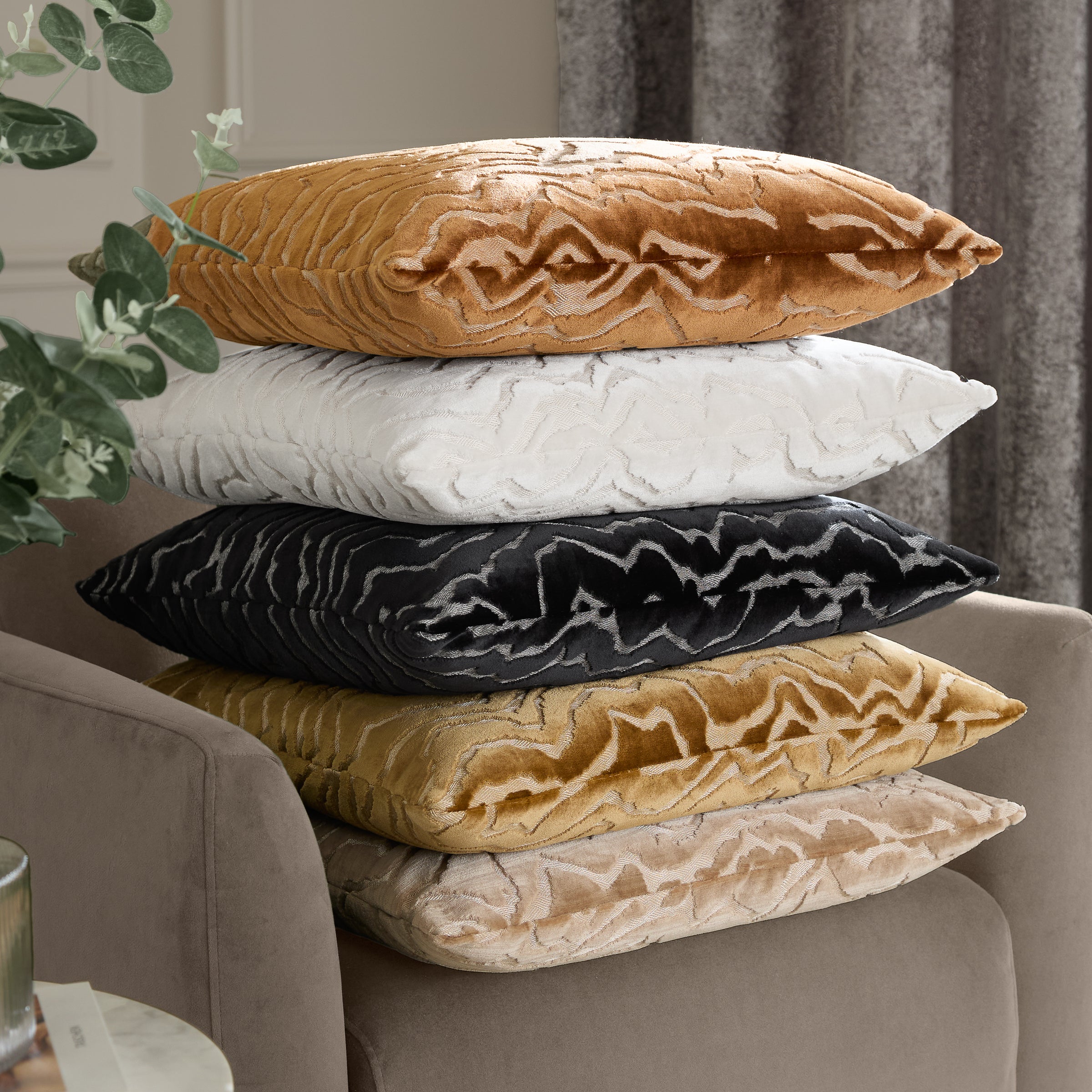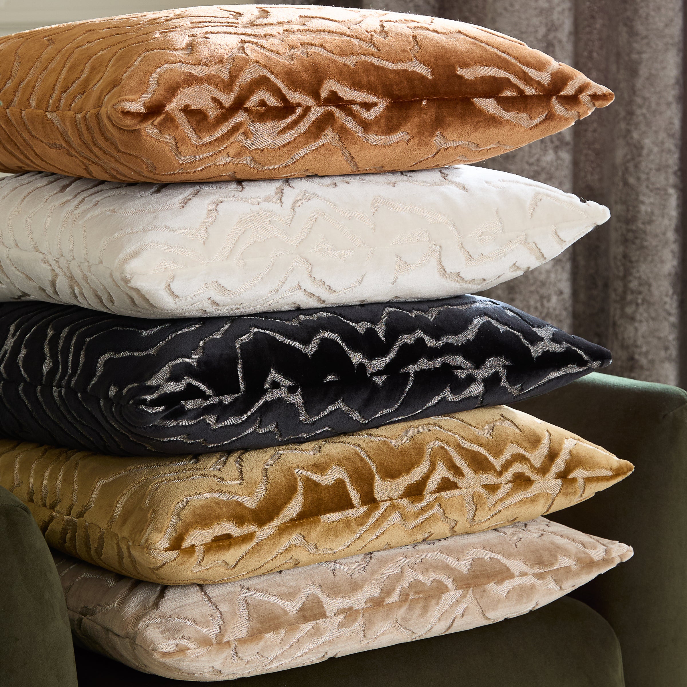 The Tierra Cushion adds opulence to living spaces. It features a double-sided abstract design in rich hues that brings modern luxury to homes. The soft, cut velvet provides exceptional comfort and a luxurious feel, making it ideal for enhancing sofas or armchairs. This timeless addition combines comfort with high-end style for a refined decorative statement.