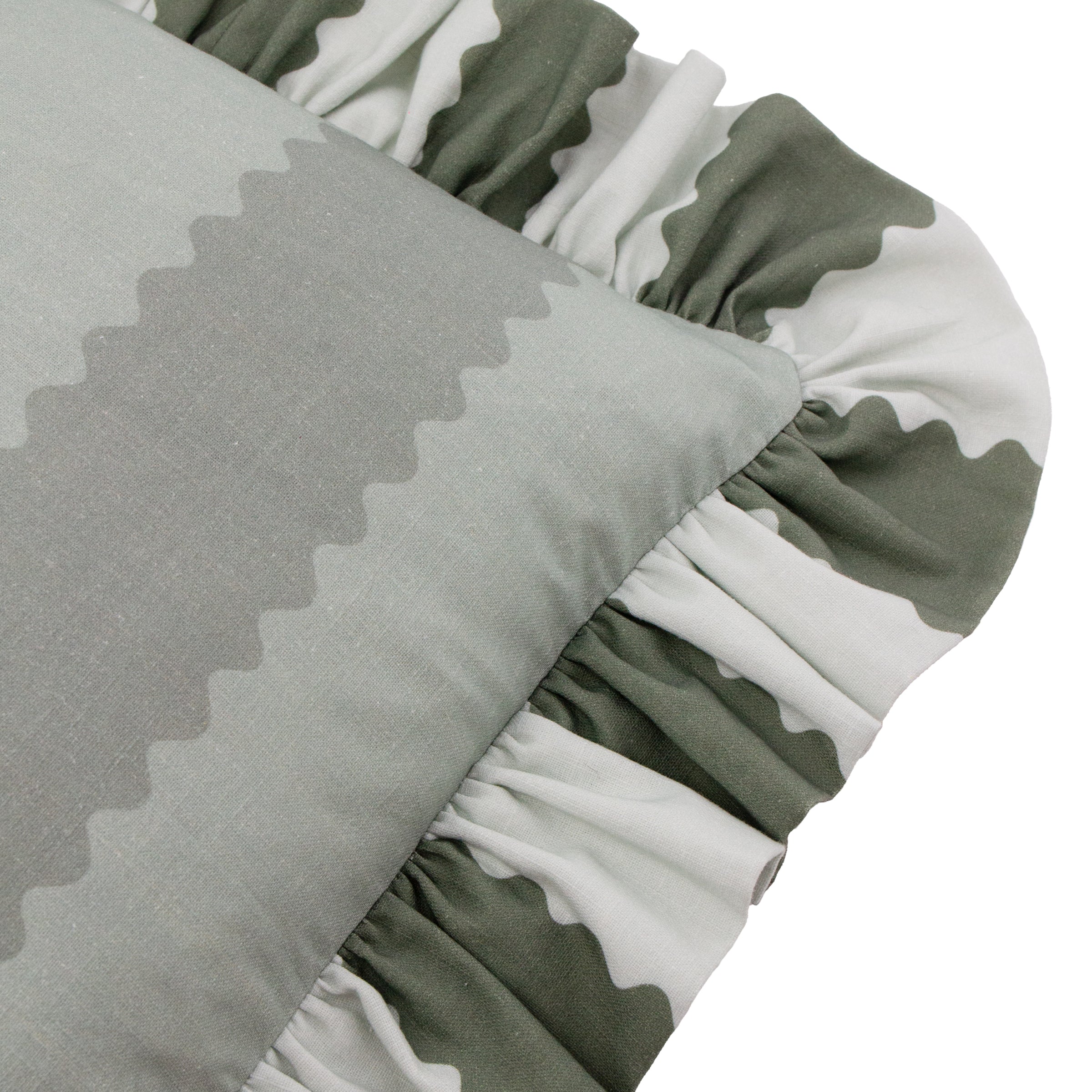 Birdie Stripe Ruffle Pillowcase Pair Bay Green/Mist