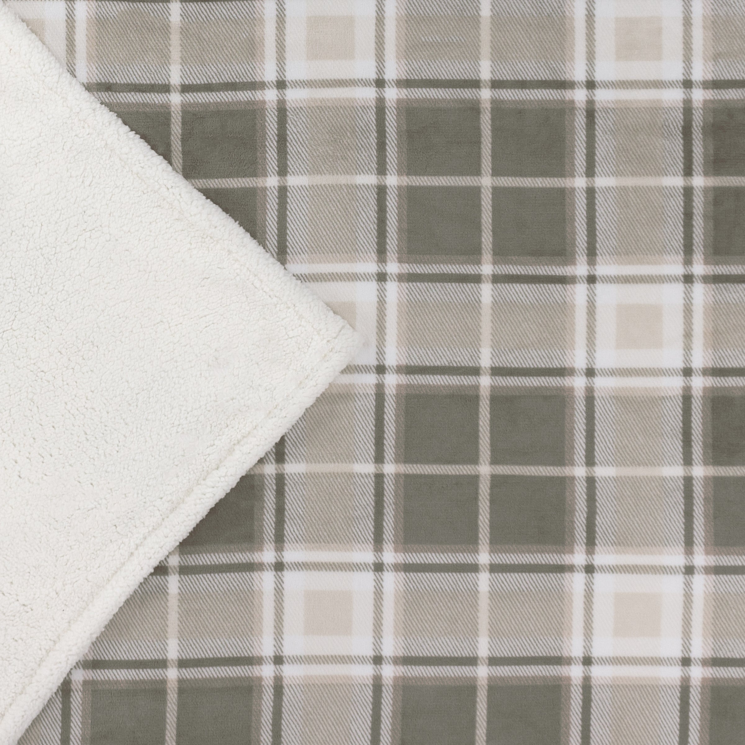 Braemar Check Sherpa Fleece Throw Green/Natural