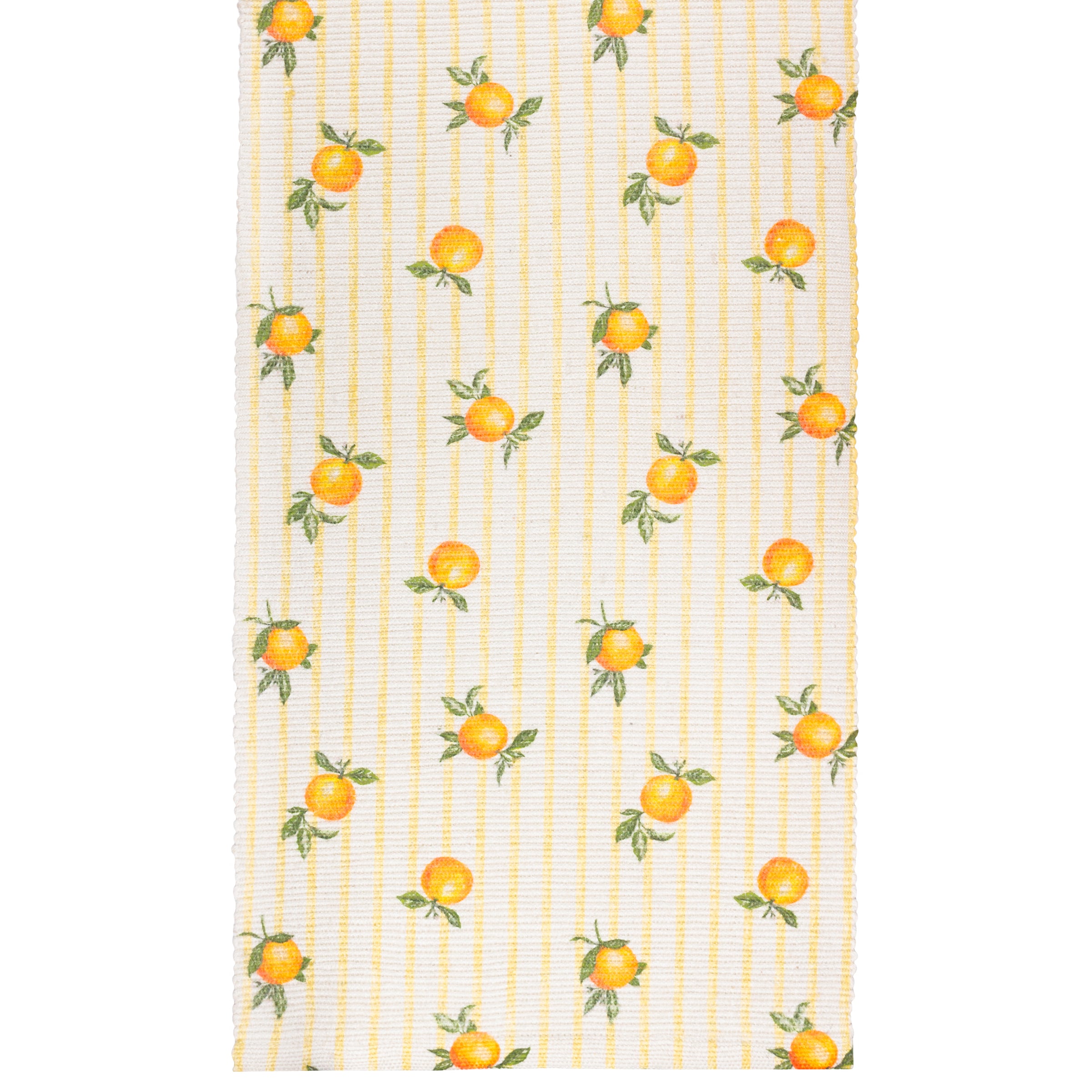 The Fruits Oranges Table Runner can transform a dining space with its hand-painted oranges and timeless stripe pattern. This piece offers a timeless, affordable style for both indoor and outdoor settings, from the kitchen table to garden parties. The material is soft yet durable and quick-drying, making it a practical choice.
