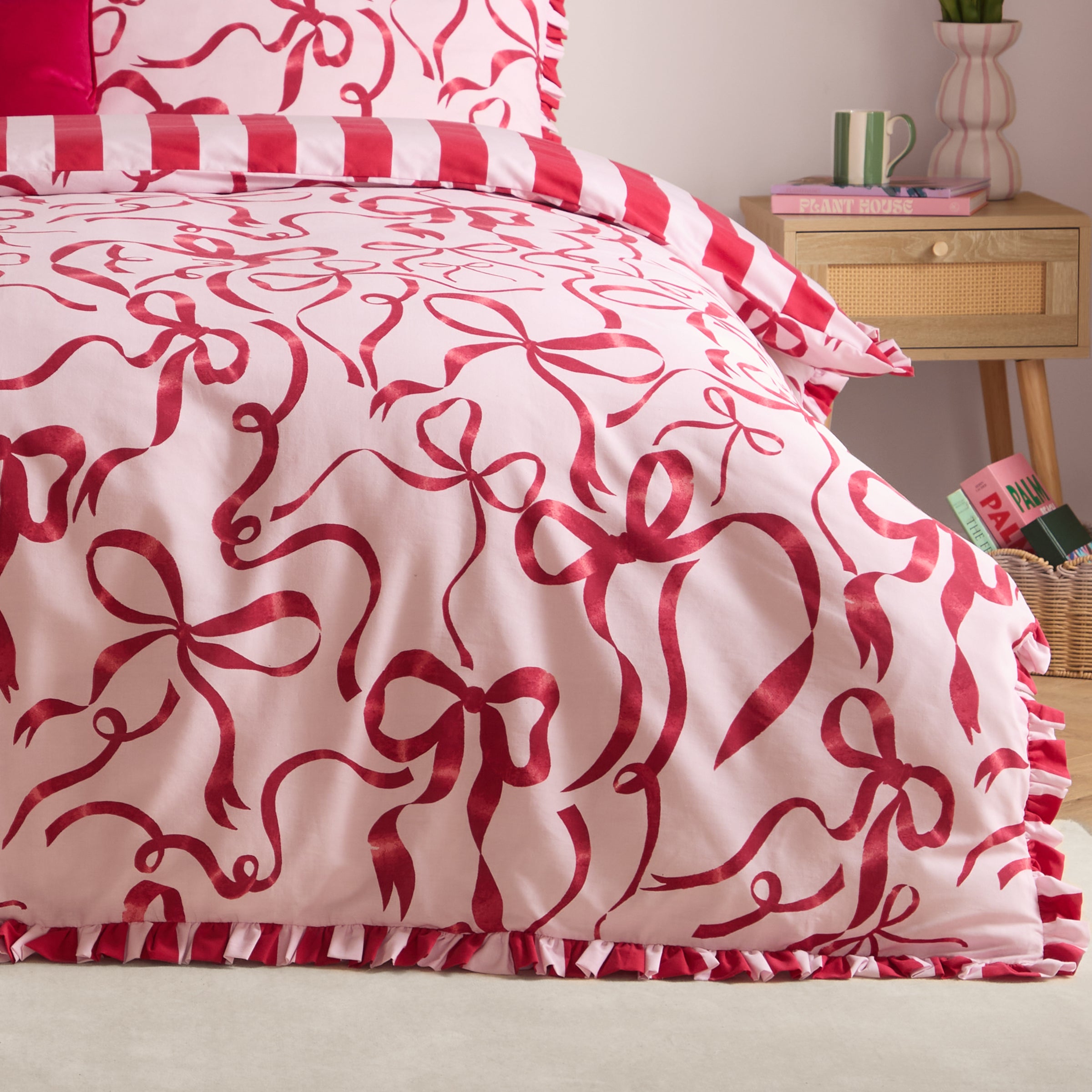 La Vie En Bows Reversible Duvet Cover Set Pink/Red