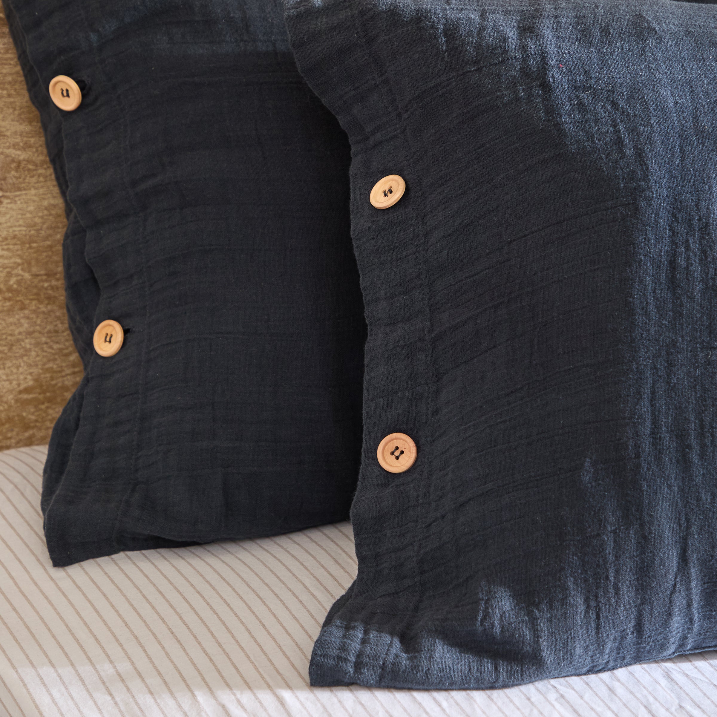Provide cocooning comfort with the Lark Duvet Cover Set. Crafted from ultra-soft double-layer muslin cotton, its breathable, crinkle-textured fabric has an irresistible cloud-like touch, giving a restful nights' sleep.