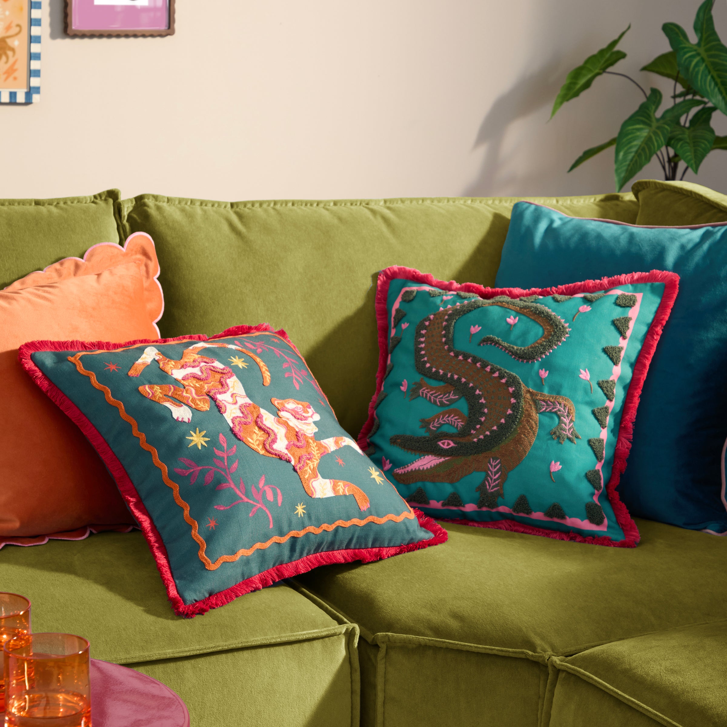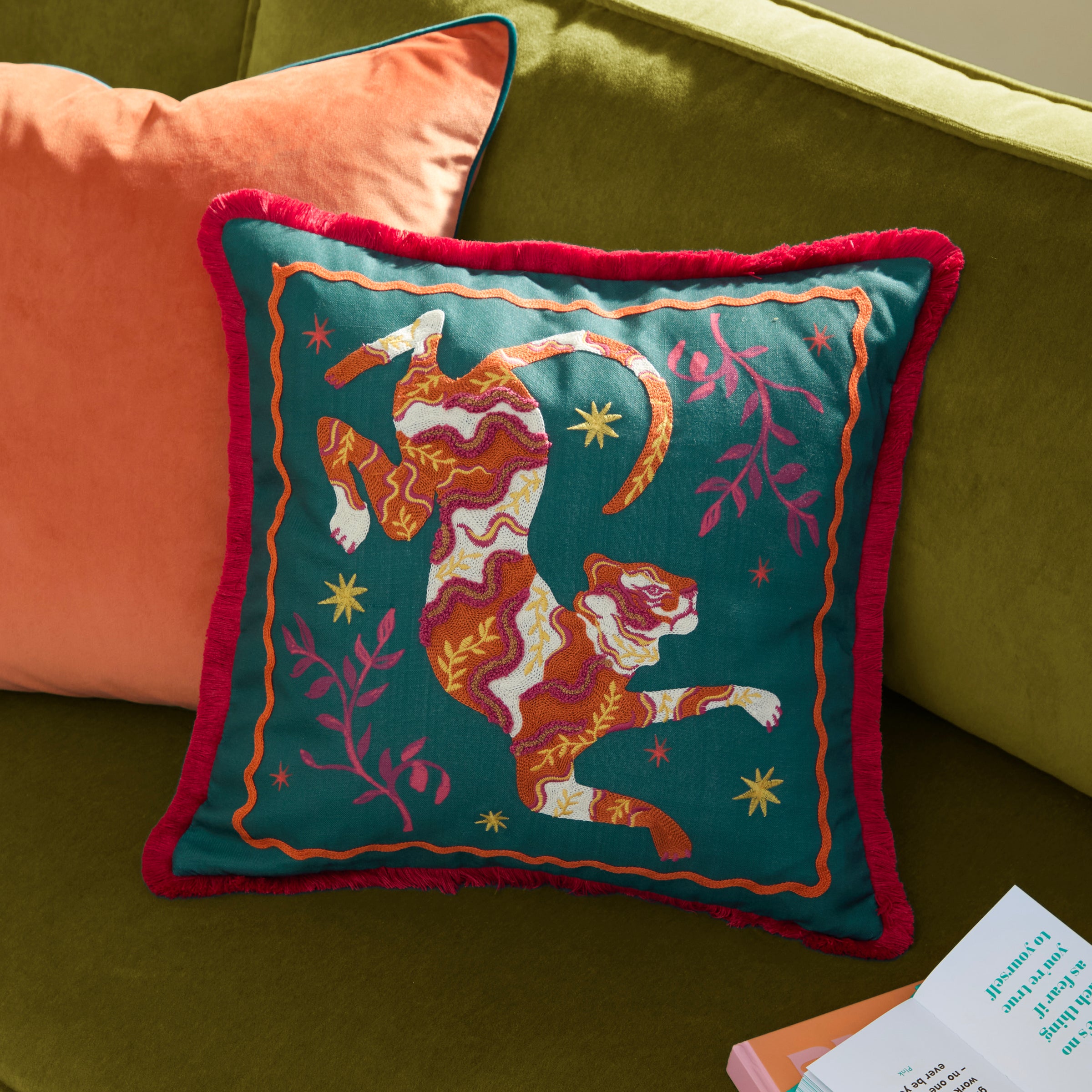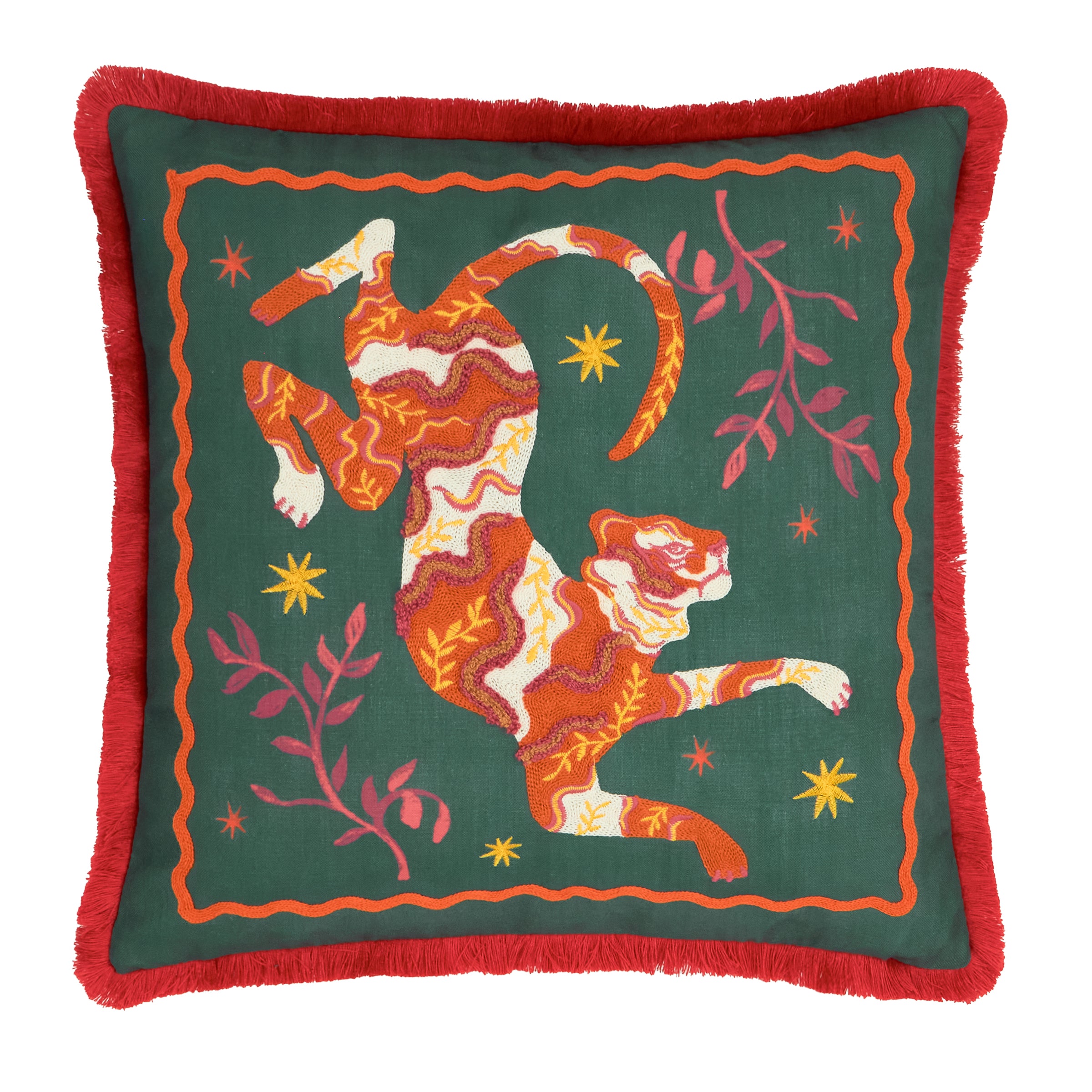 Les Animaux Tigeress Tufted Cushion Emerald