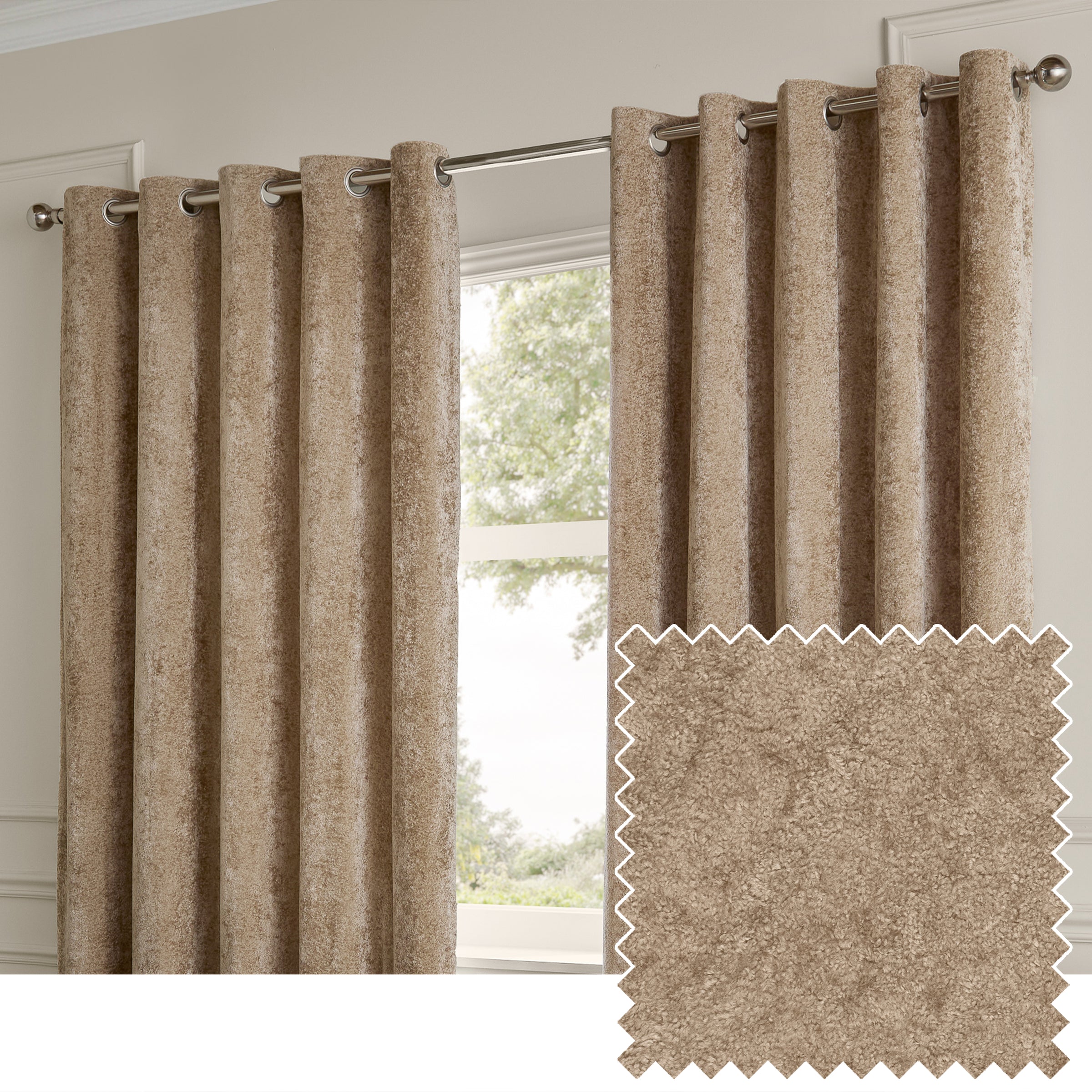 Lustre Velvet Fully Lined Eyelet Curtains Champagne