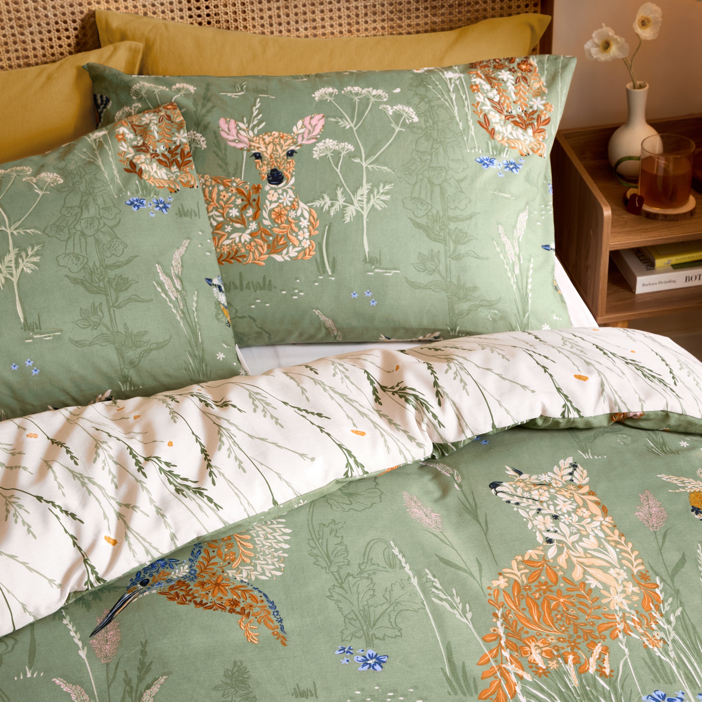 Meadow Flora Reversible Printed Duvet Cover Set Green