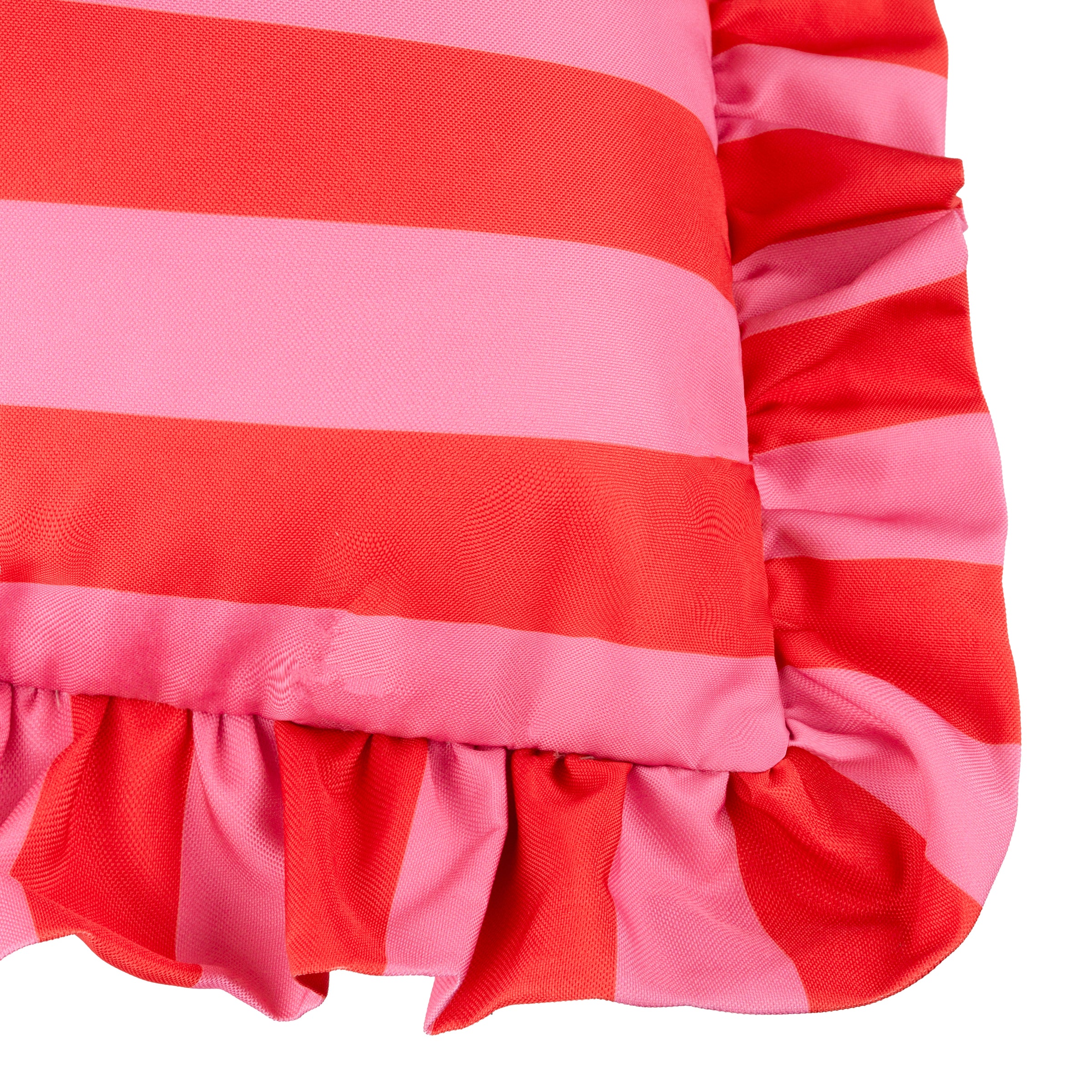 Palm Royale Stripe Ruffle Printed Outdoor Cushion Pink/Red