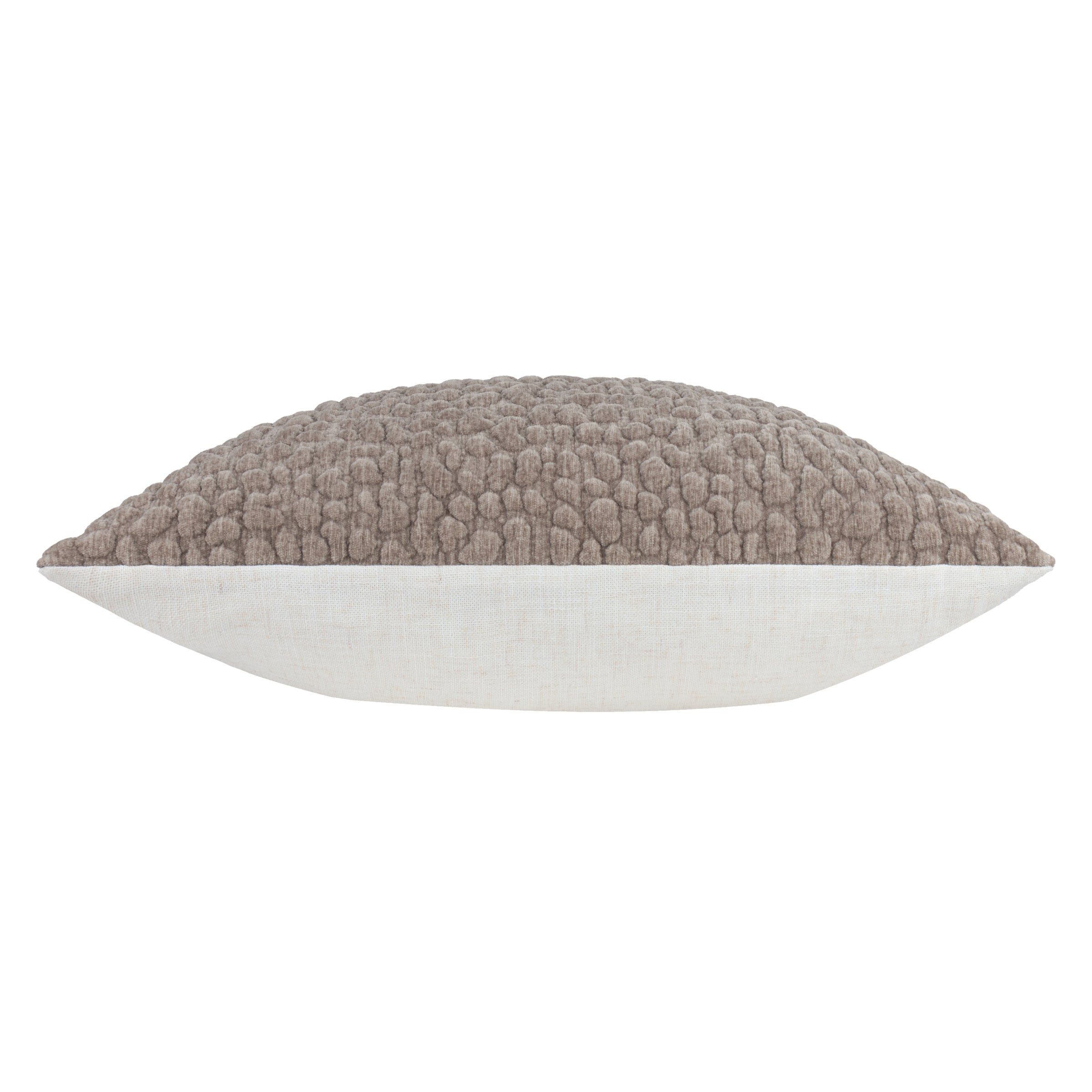 The Pebble Cushion brings natural elements indoors through its distinctive design. The soft chenille face features a unique pebble-like texture that creates a relaxed, textural accent in any room. This cushion incorporates a simple knife-edge finish with a plain linen reverse, providing versatile styling options for various living spaces.
