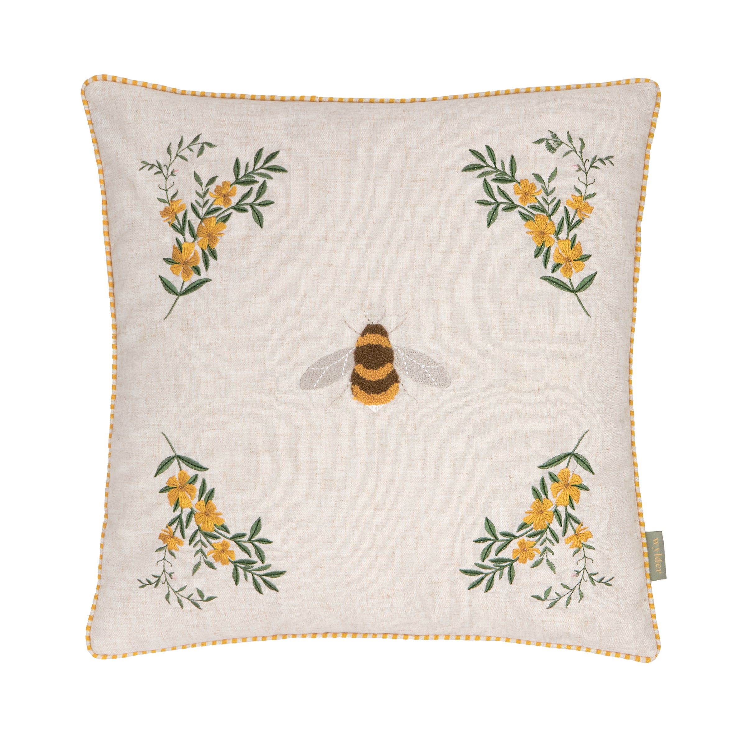 Add a touch of the countryside to any living space with the Ramble Bee Cushion. This piece features a charming tufted bee design accompanied by delicately embroidered flowers, all set against a soft fabric. The cushion is framed with a classic striped piped trim and backed by a plush velvet reverse, offering both comfort and rustic elegance. It’s an ideal choice for bringing a sense of warmth and character to sofas and armchairs.