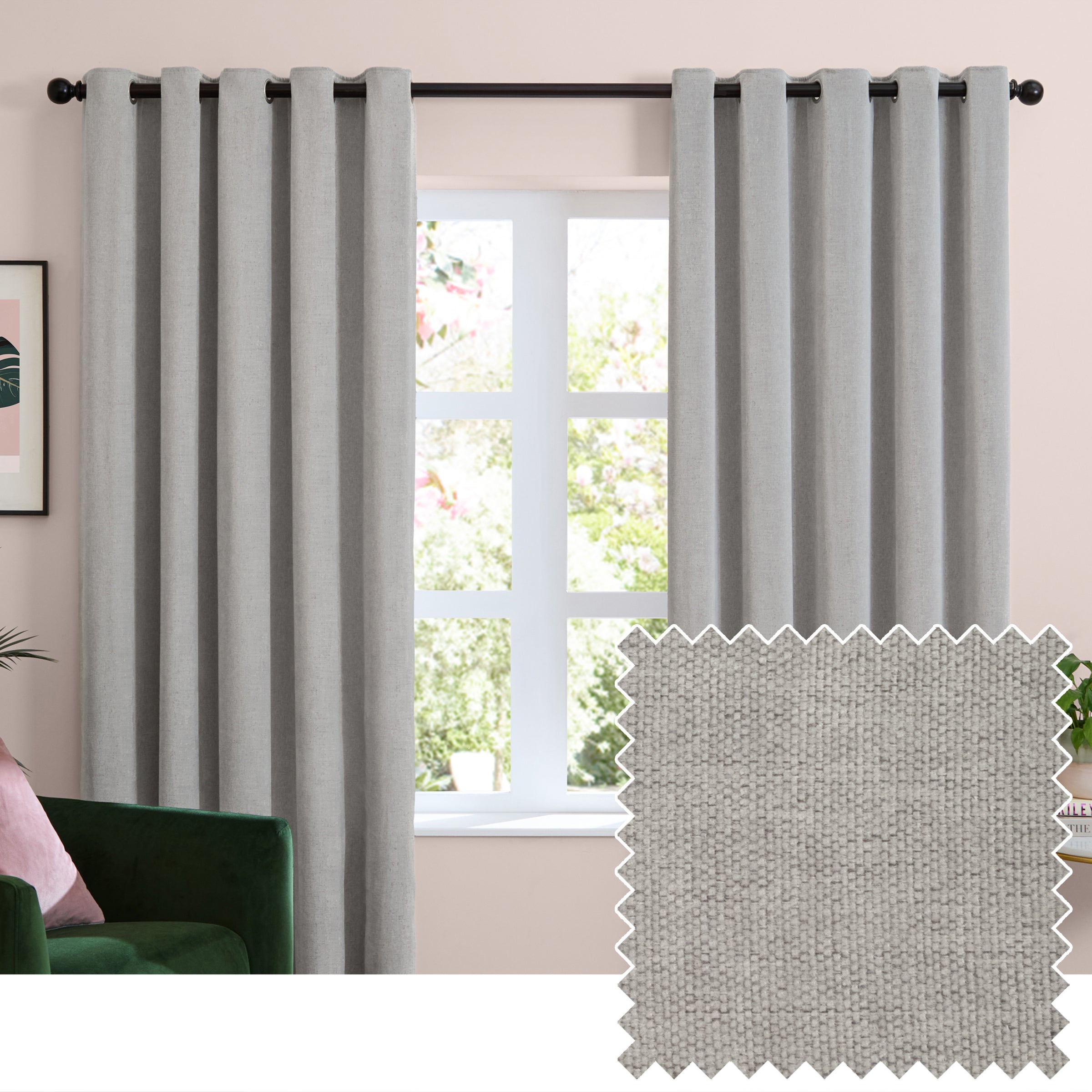 Soft Chenille Blackout Eyelet Curtains Silver